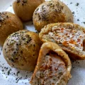 Esfiha integral de queijo fechada, massa fofinha e crocante ao...