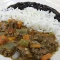 Carne moída bem suculenta envolvida com inhame, cenoura e vagem