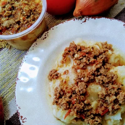 Creme rústico de aipim com carne moida ao molho suculento...