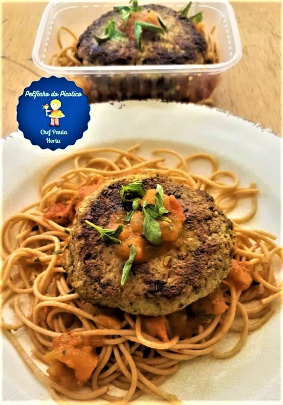 • Hambúrguer de frango com espaguete