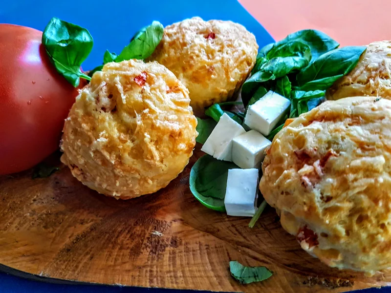INGREDIENTES: farinha integral, farinha branca, queijo minas, tomate e pesto de manjericão)