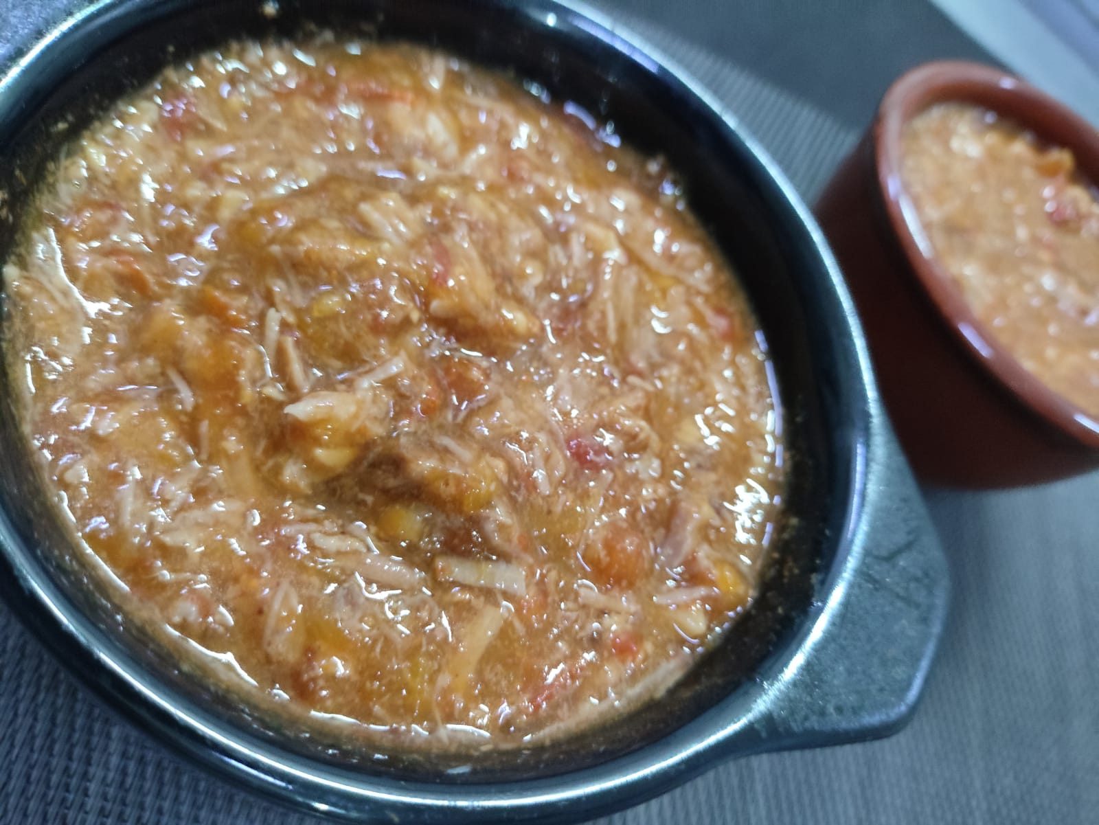 Ingredientes: Patinho, tomate, cebola, alho, açafrão, sal, louro e cominho em pó